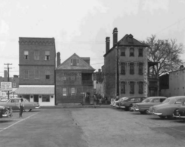Constructed ca. 1797-78 by Benjamin Harvey, a bricklayer who acquired the property in 1797 for £400. It was Lot No. 157 on the Grand Modell of Charleston. The dwelling is of the same period as the Joseph Winthrop House at 129 Tradd Street. In 1899, the property was owned by a Mr. Hogan and leased by Mr. A.R. Grooms who ran a small dairy there. Two marble steps rise to a door opening on the porch, running the length of the house on the south. Building was demolished in 1957 and a parking garage is currently on the site.