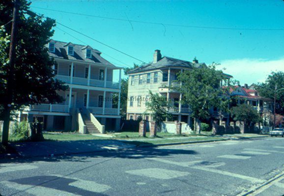 Color photographic slide of 36 Chapel Street (Anthony Vanderhorst Toomer House, I) after restoration and 34 Chapel Street (Anthony Vanderhorst Toomer House, II) after restoration, street (front) elevation. Slide is stamped Jun 78.Collection