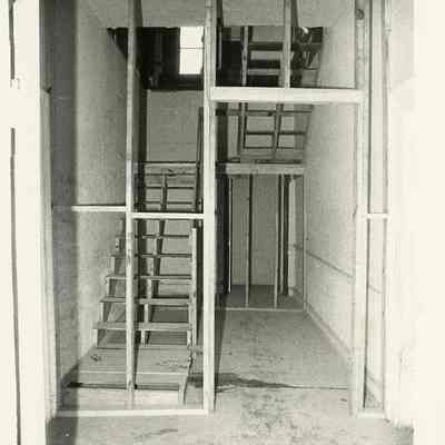 Seven B&W photographs of two interior rooms and stairs 36 Chapel Street (Anthony Vanderhorst Toomer House) before restoration. Photos a, b, and e not been scanned.Collection