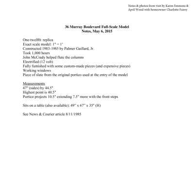 See Media link for notes, photos, and news article about an exact replica of the house built by Palmer Gaillard, Jr., in 1983-85.Created By