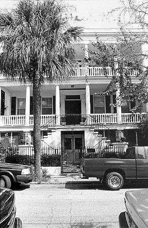 Constructed 1840. A prosperous commission merchant built this exceptional 2-story Greek Revival house in 1840 utilizing the high basement of the previous dwelling on the site that had been destroyed in the 1838 fire. Henry Street doubled the size of the house in 1845 by adding rooms and changing the plan from a single house to a double house. Double parlors open off each other on the east side of the first-floor hall, while a dining room and rear room mark the other side. While such a front-facing Greek Revival house is rare in the strict urban confines of Ansonborough, the Street House has some similarities in its placement and scope of decoration to 64 Hasell Street.