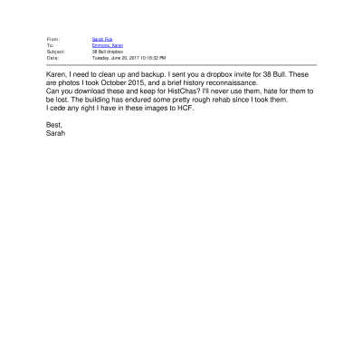 Seventy-nine color digital photographs of 38 Bull Street. Various exterior and interior views.