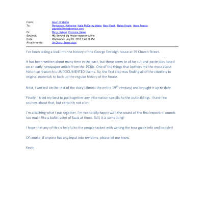 File also contains HCF summer intern research on the outbuildings and the enslaved persons in preparation for HCF's "Beyond the Big House Tour" (2017) and tour notes.Collection