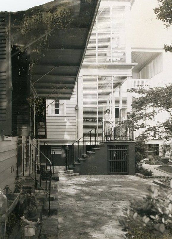 c: View of the rear (west) elevation. Two women are standing at the top of the back steps. (Upper left corner of torn off.)