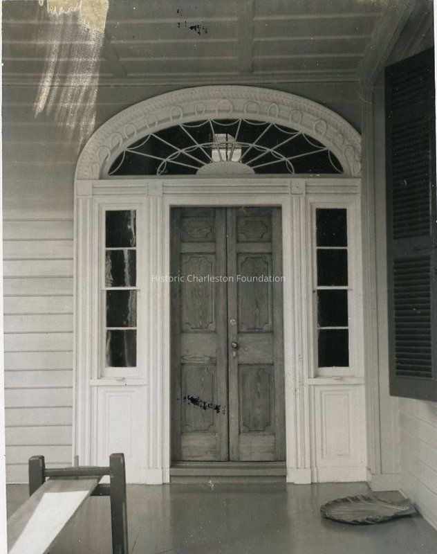 a-b: Entry door with fanlight. Joggling board in foreground (left). (Photo B not scanned; photo processing failure at upper right corner.)