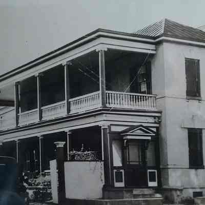 a: Taken sometime before the 1886 Earthquake, showing the building when it was three-stories, with a grocery store on the ground floor.