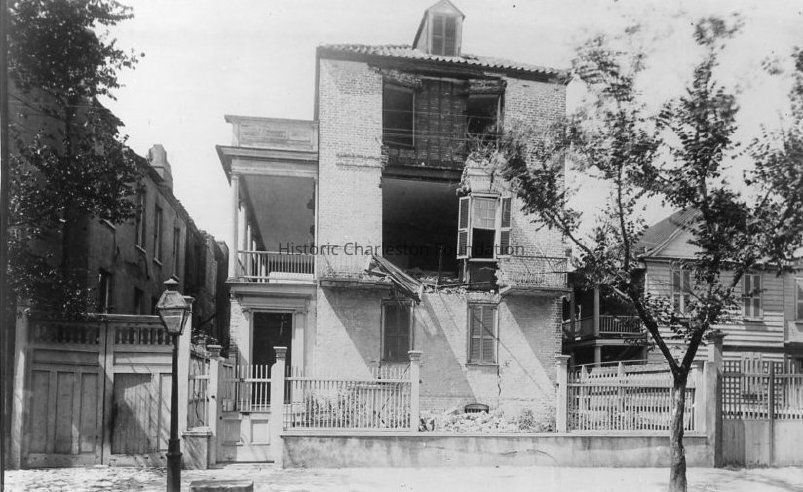 Reprint of a photograph of 39 Meeting Street) showing the damage to the east (front) elevation after the 1886 Earthquake.Collection