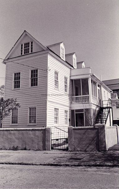 Description of house from The Buildings of Charleston: Constructed ca. 1870. The Dereefs, a wealthy free African American family with substantial holdings before the Civil War,built this 2-story wood Charleston single house on a corner adjacent to an early lane now called Harlem Court. This alley, largely peopled with African American laborers, experienced a significant decline in the 20th century. This and the construction of the new Charleston County Public Library resulted in the demolition of most of the houses in this area.Collection