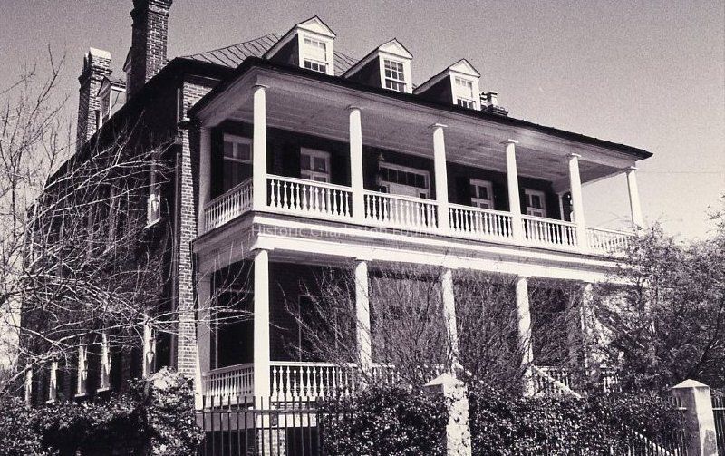 B&W photograph of the James W. Brown House (4 George Street), south (piazzas) and west elevations. Piazzas face the street.Collection