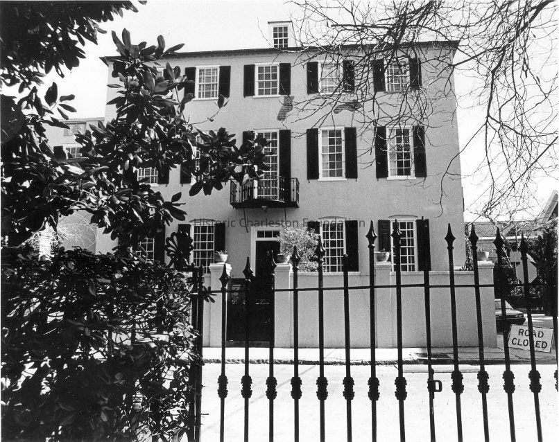 Constructed ca. 1777; altered ca. 1788-1800; restored 1970s. George Kincaid, one of the original developers of the Legare Street area in the 1770s, built a double tenement on filled marshland in 1777. Later acquired by the wealthy English merchant and landowner William Hopton as an investment, the house was devised to his daughter Sarah in 1785. Miss Hopton sold the property shortly before her marriage to Nathaniel Russell. The westernmost dwelling retains more of its early character and still has original full paneling in its principal rooms. Late-18th century alterations include gib doors and wrought-iron balconies on the second-floor Lamboll Street elevation. Piazzas added in the early-20th century were removed in the 1970s. The eastern tenement was heavily altered in the late-19th and early-20th centuries with a piazza addition and the installation of decorative, pedimented window hoods. The dense character of this block, especially the use of the double tenement form, contrasts with the more spacious quality of lot layouts northward along Legare Street. (Also known as 30 Lamboll Street.)