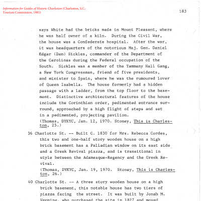 File contains newspaper article (1970 DYKYC); house history from Information for Guides of Historic Charleston.Collection