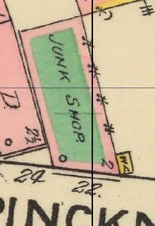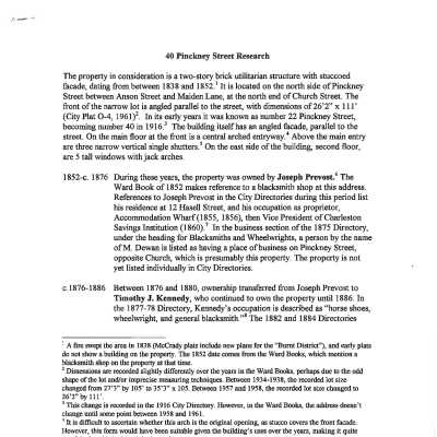 File contains historical/chain-of-title research notes, including photocopies of Sanborn maps and various plats; handwritten research notes; photocopy of drawing, street elevation (unattributed, undated, includes proposed alteration notes); newspaper article about proposed additional guest rooms nearby.