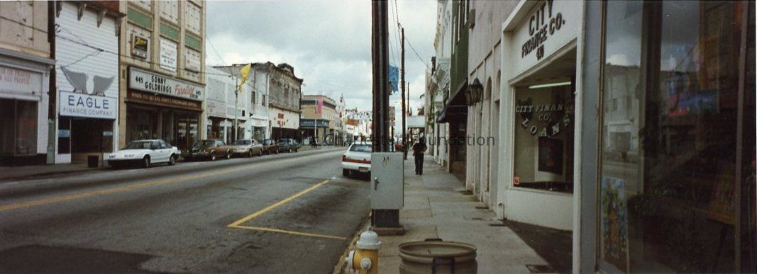 c: View north on King Street from 441 King (Eagle Finance Company)/445 King (Sonny Goldberg's Furniture Center. City Finance Company (438 King) and beyond at right.