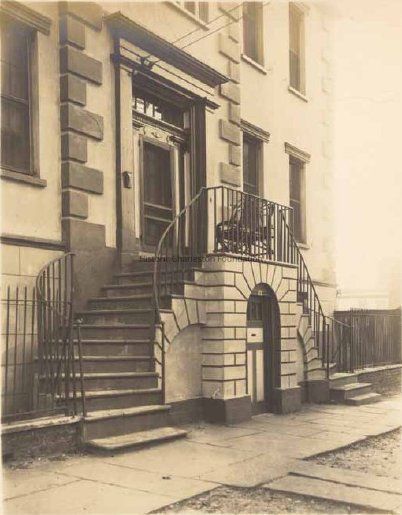 Scan of photograph of 43 Charlotte Street (William A. Hussey House), street (front) elevation, featuring the staircase leading to the doorway.Photograph Details