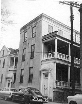 B&W photograph of 43 Society Street (Robert M. Venning House), street (front) elevation, corner view of building showing piazzas.Collection