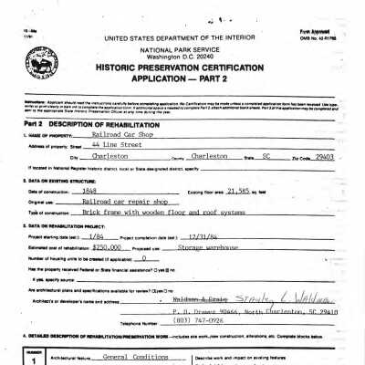 44 Line Street (SC Railroad Car Shop)Entry/Object ID