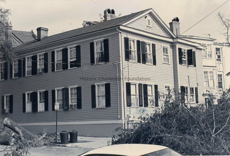 B&W photograph of the southwest corner (rear and side) of 45 Charlotte Street.Collection