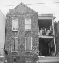 B&W photograph of 46 Anson Street (Thomas Wallace House), street (front) elevation, before neighborhood rehabilitation. "ARP" written on verso of photo (Ansonborough Rehabilitation Project).Collection