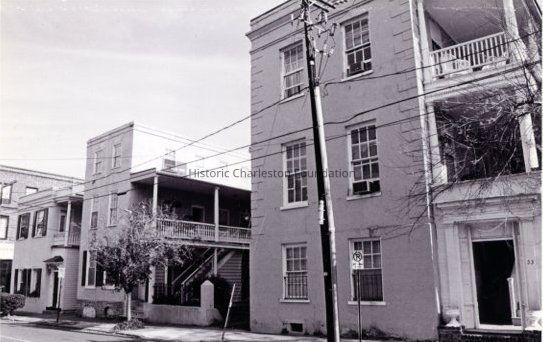Two B&W photographs of a view of Hasell Street from 47 Hasell to 53 Hasell: