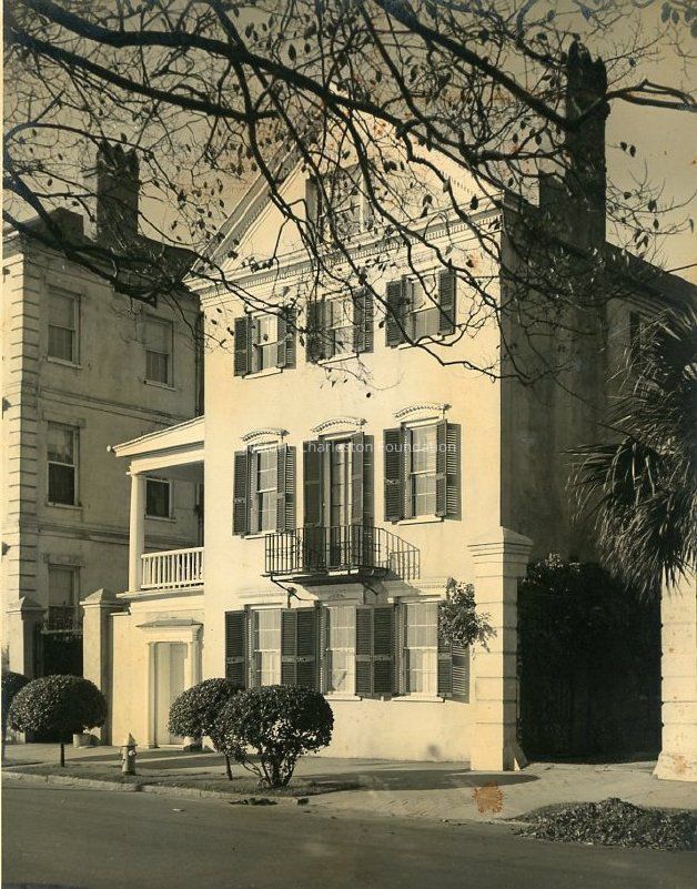 B&W photograph of the Anne Boone House (47 East Bay Street), front (east) elevation. Also shows a portion of the north elevation of 45 East Bay Street at left.Collection