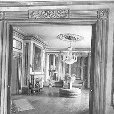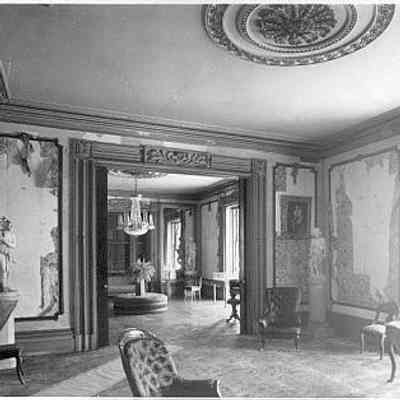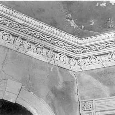 20) 1st floor, SW room, ceiling ornament (SE room same except chandelier in place) [pictured here]