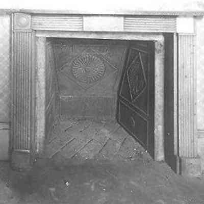 38) 2nd floor NE room, mantel with cast iron line in fireplace [pictured here, #22]