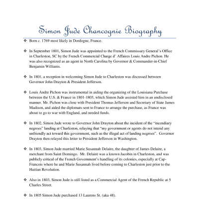 48 Laurens Street (Simon Jude Chancognie House)Entry/Object ID