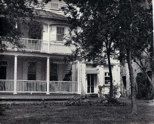 Constructed ca. 1814-16; rehabilitated 1961; addition 1988. A French merchant and consul built this 3-story, hipped-roof dwelling on lands obtained from the estate of Christopher Gadsden in 1807. The house retains its simple Neoclassical detailing with the exception of the Greek Revival doorway in the piazza screen. Most of its simple woodwork survives in its interior. The expansive corner lot provides a notable walled garden. Visible from the Alexander Street elevation is a contemporary classical addition.