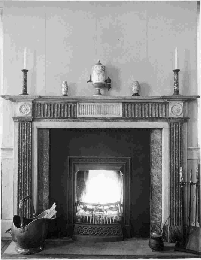 a: Mantel and fireplace.