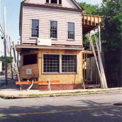 Six color photographs of 48 Mary Street undergoing and after stabilization: