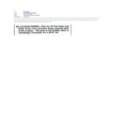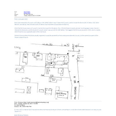 See PDFs or images for 1944 Sanborn Map, 1872 Birds-Eye View, 1922 Evening Post advertisement for 3 Lucas Street, 1921 Evening Post advertisement (with photo and floor plans), and supporting emails.Created By