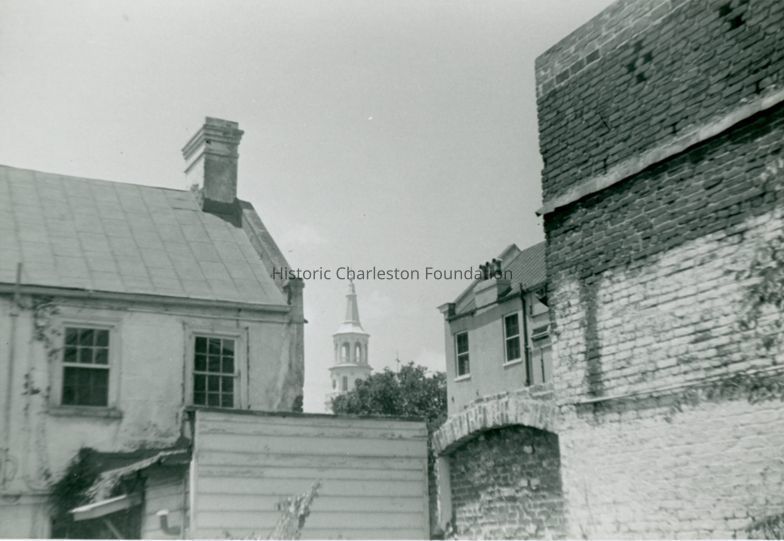 b: View of parts of miscellaneous buildings from across 53 Queen Street. St. Michael's Church in background.