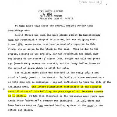 Related Units of Description: See also "Ansonborough" document box, Preservation Topics shelves.Related Publications