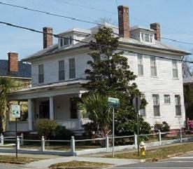 Color photograph of 501 Huger Street, taken in 2010. Street elevation, corner view. Corner of Huger Street and President Street.Collection