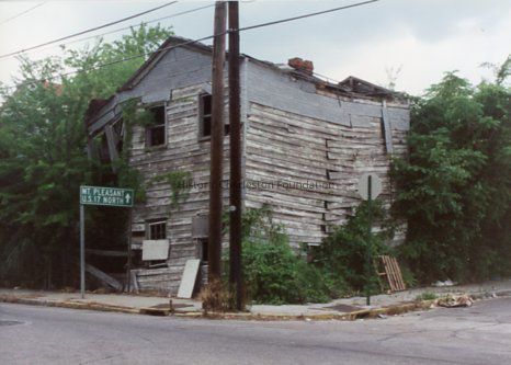 Nine color photographs of 51 Aiken Street, various elevations, in dilapidated condition, before rehabilitation. Photos are dated June 1993. Only photos A & B have been scanned.Collection