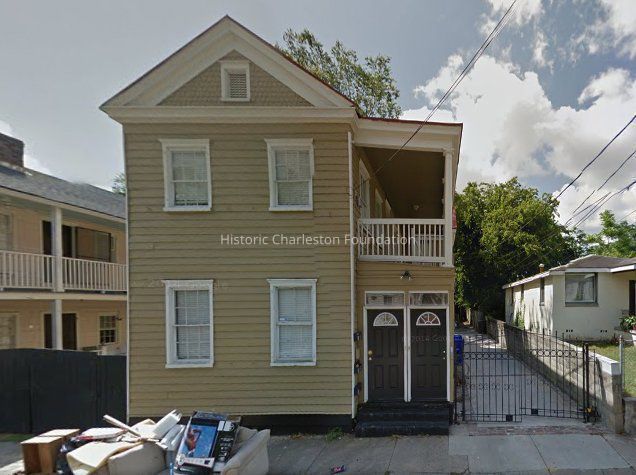 Constructed ca. 1850s, 51 Amherst Street consists of a Charleston single house and outbuilding. The house is L-shaped with a gable roof, turned seam metal roof, and two chimneys, and has decorative scalloped siding above the full-return cornice on the front facade.