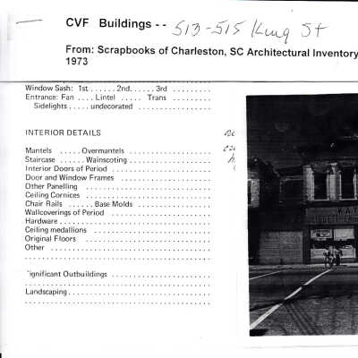 File contains occupancy history from Old Codgers' Charleston Address Book; SC Architectural Inventory (see also pdf on Media link).