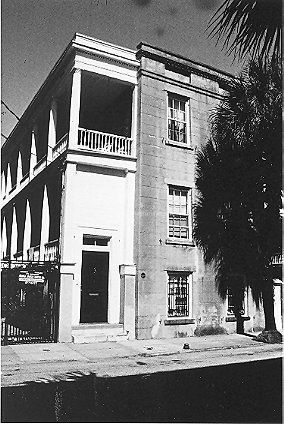 Constructed 1840-41. The James M. Stocker House is characterized by a flat roof and scored stucco facade and retains much of its original detailing, including its simple Greek Revival door surround. Stocker, a merchant, bought the lot in 1840 and probably began construction of the single house immediately, as his mortgage to the Bank of the State of South Carolina required that funds for construction be expended within a year. In 1847 the property was conveyed in trust for Louisa Lord, the wife of Stocker's business partner, Samuel Lord. The Lords lived in this residence for the next several decades. (Poston, Buildings of Charleston.)