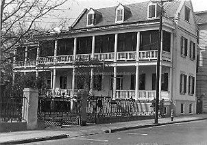 Constructed 1881. This site was owned by the Joseph Ball family for nearly 100 years. His widow's estate was finally settled in the late 1870s. Property tax records and deeds indicate that the purchaser, a stevedore, apparently built a typical example of an antebellum masonry single house with a pilastered, closed gable end and Tuscan-columned piazzas. It has served for many years as the parsonage for the First Baptist Church.