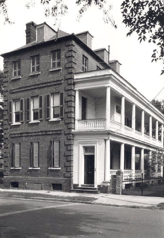 Constructed ca. 1815. The only original brick house left on Laurens Street, this well-preserved Federal dwelling has Flemish-bond pattern brickwork with belt courses between floors and brick quoining. The house has the further distinction of having been in the possession of only two families in its history. Descendants of James Marsh, the builder, owned the property until 1904, when it was conveyed to Mary Connor, the first of a succession of Connor-Renken family members who still live in the building.