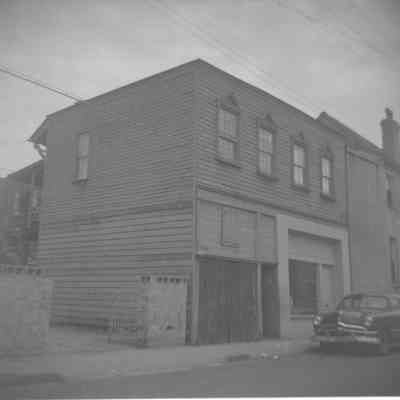Two B&W photographs of 54 Anson Street, street (front) elevation, different orientations. Car parked in front of building. "ARP" [Ansonborough Rehabilitation Project].written on back of photo A.