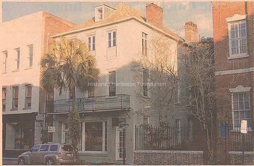 Constructed 1771-1775; renovated ca. 1800 and again later in the 19th century. Thought by tradition to have been erected for the Geiger family shortly after completion of the Exchange in 1771, this structure features an early commercial floor plan on each level. At various times the room fronting Broad Street has been used as a drugstore and for retail sales. Its surviving circa 1800 woodwork is of great importance. It stands as one of the few Federal period shop interiors left in the Southeast. The German immigrant Geiger Family held the building for nearly eight years, selling it in 1854 to James McConkey. (Buildings of Charleston.)