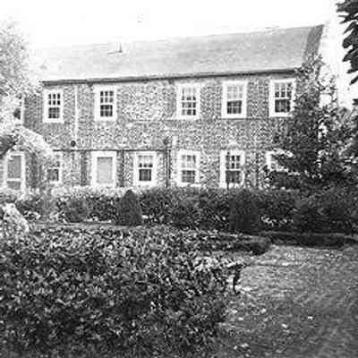 c: View of the dependency (kitchen house?) from across the garden.