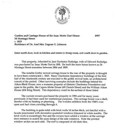 54 Montagu Street (Isaac Motte Dart House a/k/a Edward Washington North Estate)Entry/Object ID