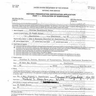 54 Tradd Street (William Vanderhorst House)Entry/Object ID