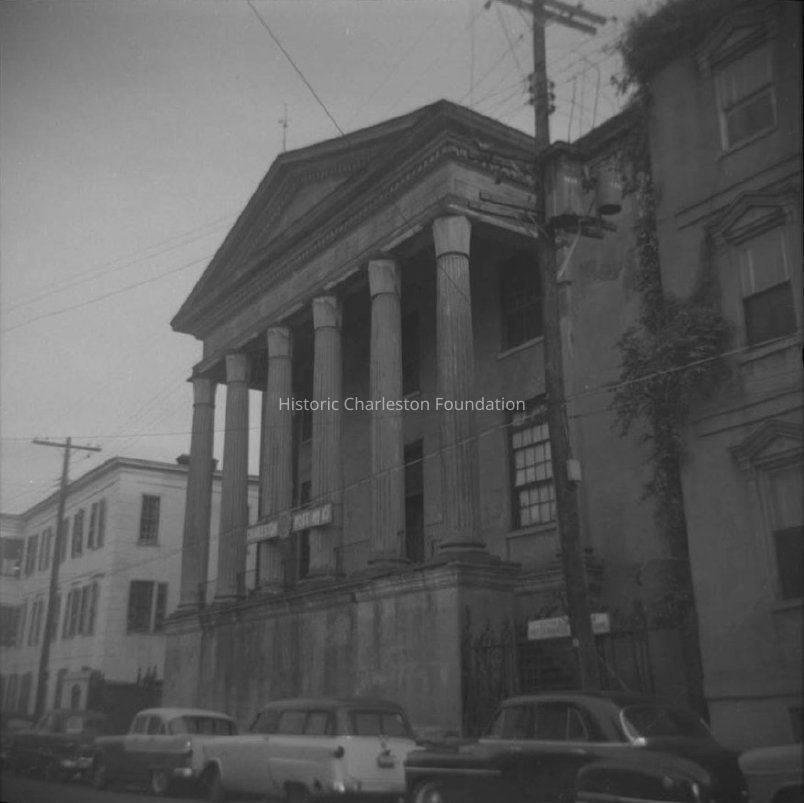 B&W photograph of 55 Society Street (Old Charleston High School), street (front) elevation, before restoration. ARP [Ansonborough Rehabilitation Project] written on verso of photograph.Collection