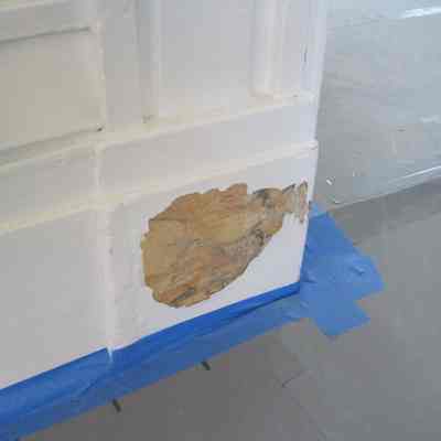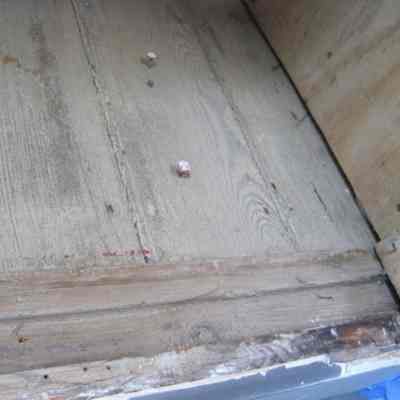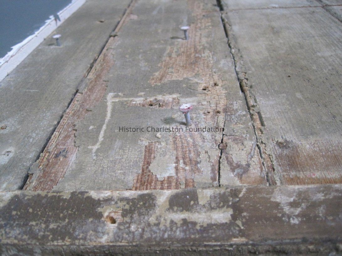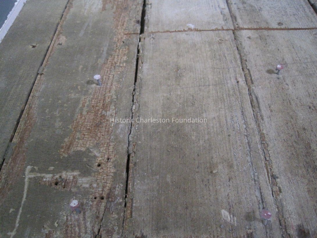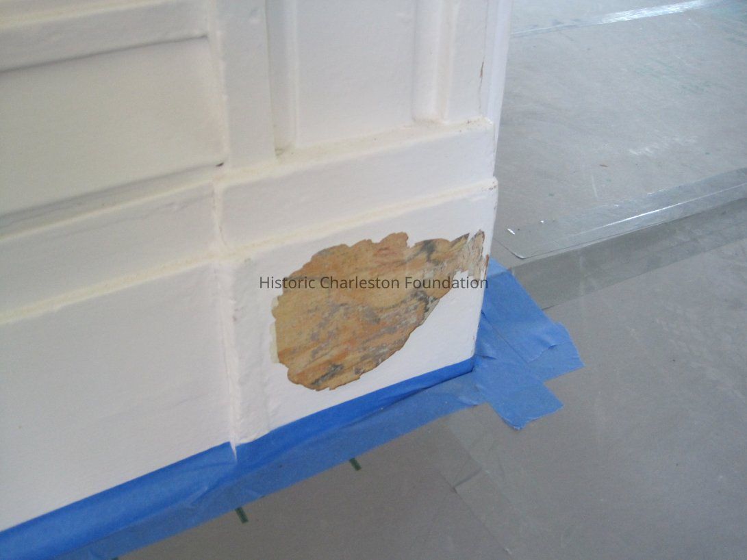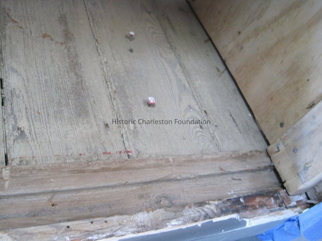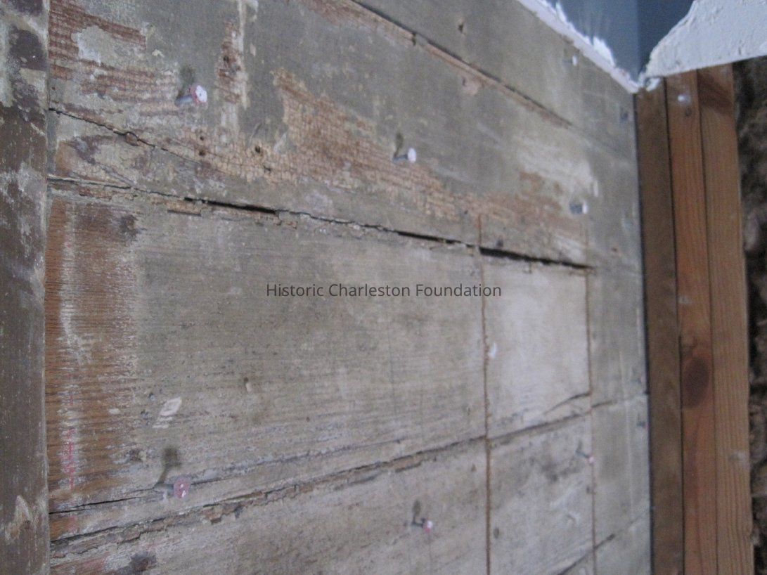 a-d: Sections of the exterior wood siding that had not been exposed for over 40 years, showing evidence that the exterior had been painted. The photos are from the west elevation, second floor piazza bathroom enclosure.
