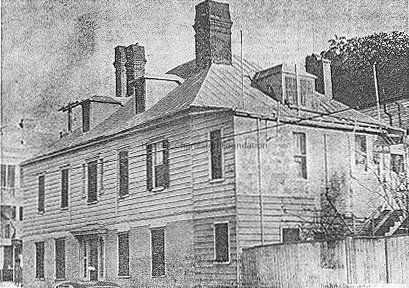 Constructed before 1817. Historians have proposed various theories to explain the history and architecture of this corner building. Generally called the "West Indian House" because of its original T-shaped form with a steep hipped roof overhanging an inset piazza, the building stands on a raised brick basement with several openings to the sidewalk. The dwelling faced open country and may have been part of an uptown farm or plantation. The great-niece of Thomas Radcliffe, Sophia Frances Perry Shepherd, received 57 Radcliffe upon her marriage to Alexander Barron Wilson in 1816. Documentary evidence remains unclear as to whether the Shepherd-Wilson House stood on this site prior to the marriage.