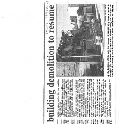 File contains newspaper articles about the demolition of the building (2002) and the Midtown development project (2013).