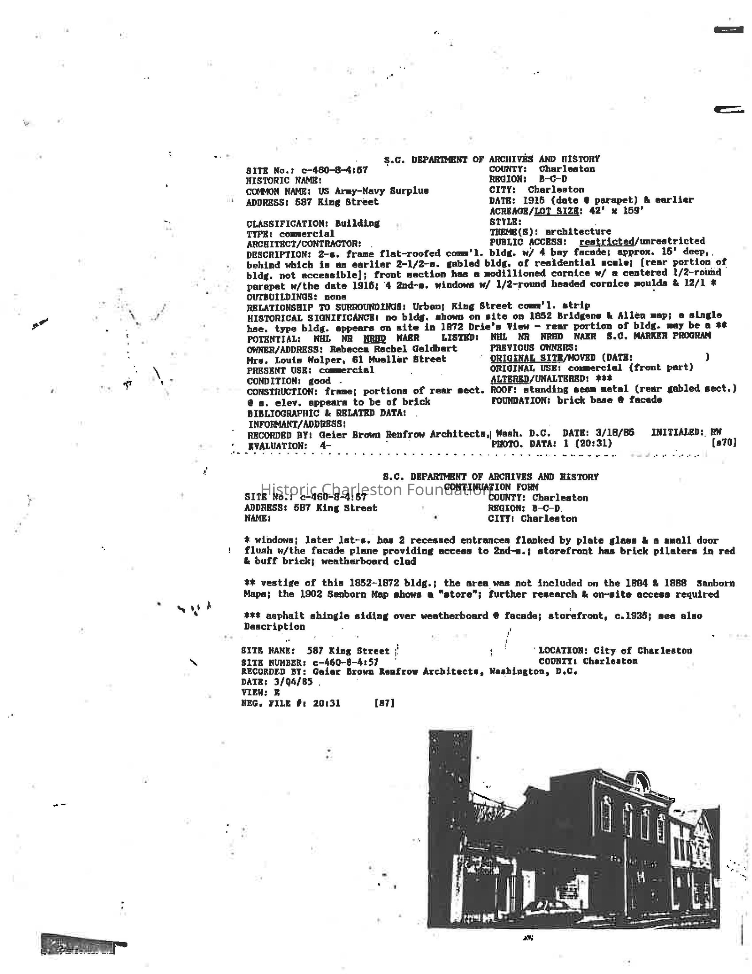 File contains S.C. Dept. of Archives and History architectural survey sheet.